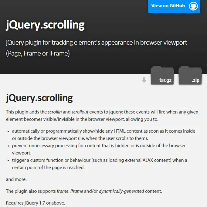 - jquery.scrolling official page on NPM.org, the node.js repository of most jQuery plugins.