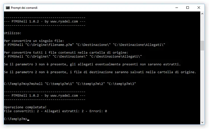 P7M Shell è una console application che unisce le funzionalità di P7M Convert e P7M Extract in un singolo file EXE, eseguibile da linea di comando o tramite shell. Lo strumento è in grado di svolgere le seguenti operazioni: